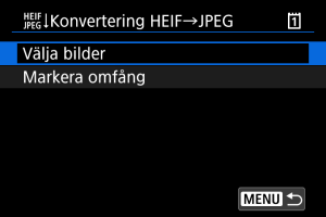 för att välja en HEIF-bild som ska konverteras till JPEG och tryck sedan på knappen