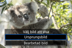 - Välj [Bearbetad bild] för att använda de konverterade JPEG-bilderna för visning.