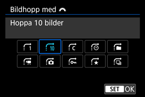 Vid enbildsvisning kan du vrida på -inmatningsratten för att hoppa framåt eller bakåt bland bilderna med den hoppmetod som du har valt.