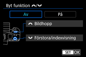 Du kan växla de funktioner som tilldelats dessa inmatningsrattar för att användas på bildvisningsskärmen.