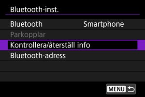 - Välj [Bluetooth-adress] för att kontrollera kamerans Bluetooth-adress.