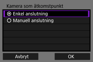 Dessa instruktioner beskriver hur du upprättar en direkt Wi-Fi-anslutning med en smartphone och använder Camera Connect för att styra kameran.