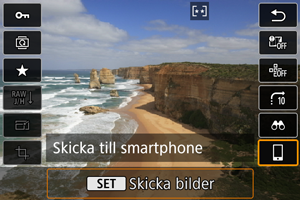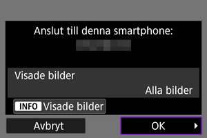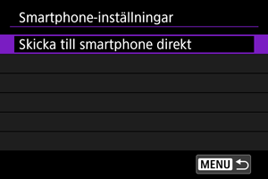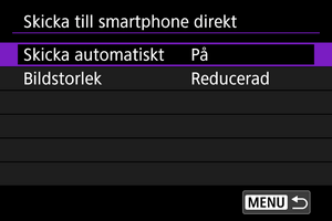 Dina bilder kan skickas automatiskt till en smartphone. Innan du följer dessa steg kontrollerar du att kameran och din smartphone är anslutna via Wi-Fi.