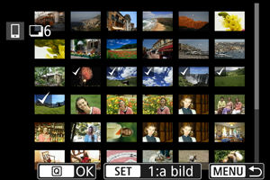 -inmatningsratten motsols för att välja bilder som ska skickas med indexskärmen.