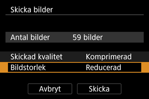 - I [Bildstorlek] kan du välja storleken på bilden som ska skickas.