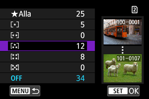 - När du väljer typ av gradering ställs de visningsbara bilderna in.