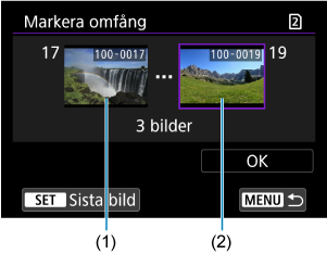 Du anger vilka bilder som ska vara visningsbara genom att markera den första och sista bilden bland bilder ordnade i filnummerordning.