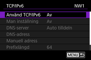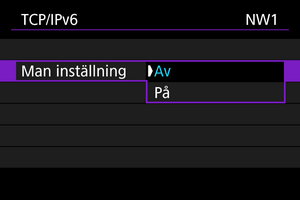 Konfigurera inställningarna manuellt för att använda IPv6.