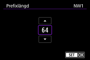 -inmatningsratten för att välja ett värde (1–128) för att ställa in prefixlängden.