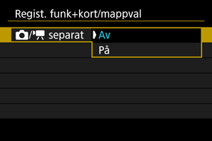 - Välj [På] för automatisk konfiguration av registreringsmetod för stillbilder och filmer. Filmer spelas in på kort