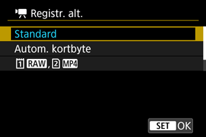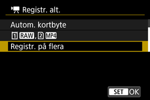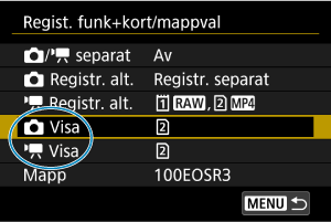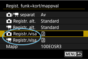 Välj kortet för inspelning och uppspelning med [ Registr. alt.]/[