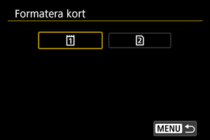 - Den kapacitet som anges för minneskortet på menybilden för kortformatering kan vara mindre än den kapacitet som anges på kortet.