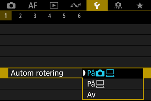 1. Välj [Inställningar: Autom rotering] ().
