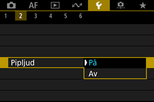 Stänger av pipljudet för fokusbekräftelse, fotografering med självutlösare och touchfunktioner.