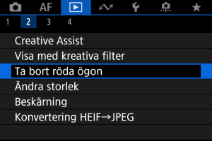 Korrigerar automatiskt relevanta delar av bilder med röda ögon. Bilden kan sparas som en separat fil.