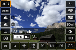 : Snabbkontrollskärm] (), men endast den valda skärmen visas om en är vald ([