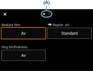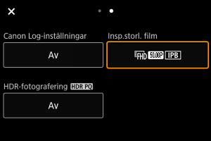 Precis som vid stillbildsfotografering kan du trycka på knappen för att komma åt snabbkontrollskärmen. Varje gång knappen
