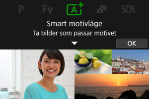 är ett helautomatiskt läge. Motivet analyseras och inställningar sker automatiskt. Fokus ställs också in automatiskt på stillastående motiv eller motiv i rörelse genom identifiering av motivets rörelse.