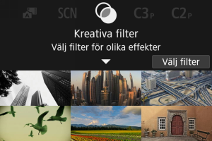 - Vissa inställningar för Kreativa filter finns tillgängliga i Kreativa zon-lägen ().