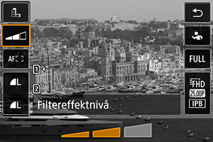-inmatningsratten för att välja filtereffektnivån och tryck sedan på knappen