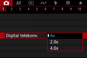 Fotograferingsförstoringen kan ökas utöver objektivförstoringen genom att förstora mitten av bildområdet.