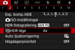 HDR-bildkvalitet vid RAW+JPEG- eller RAW+HEIF-fotografering motsvarar din angivna JPEG- eller HEIF-bildkvalitet.