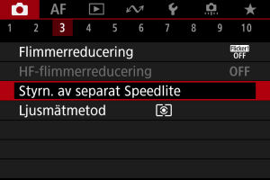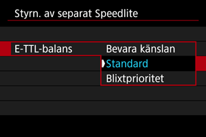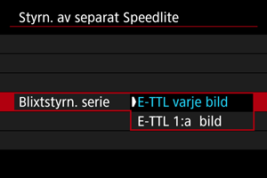 : Styrn. av separat Speedlite]-skärm. Ställ in den direkt på Speedlite.