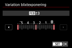 Speedlite utrustad med variation blixtexponering (FEB) kan automatiskt ändra den externa blixtenergin eftersom tre bilder tas direkt.