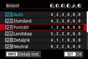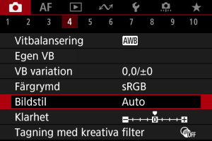 - Om du vill ta bilder med den ändrade bildstilen väljer du först den justerade bildstilen och tar sedan bilden.