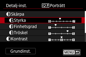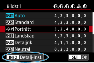 - Genom att välja [Grundinst.] i steg tre kan du återställa parameterinställningar för respektive bildstil till standardinställningarna.