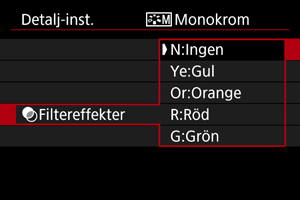 | N:Ingen | Vanlig svartvit bild utan filtereffekter. |