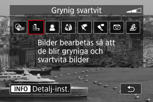 - Med [Grynig svartvit] skiljer sig förhandsgranskningen något från dina bilders utseende.