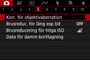 Om [Korrigeringsdata ej tillgänglig] eller [] visas med [Digital objektivoptim.] kan du använda EOS Utility för att lägga till objektivets korrigeringsdata för kameran. Mer information finns i EOS Utility användarhandbok.