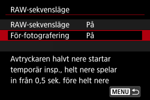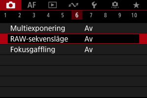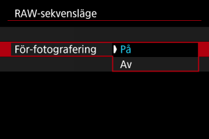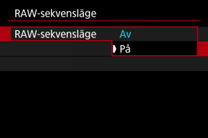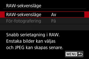 • [Fotografering: RAW-sekvensläge] återgår till [Av] när strömbrytaren ställs in på Avstängd.