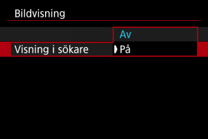 - [Visning i sökare]-inställningar träder i kraft när [Visningstid] är inställd på ett annat alternativ än [Av].