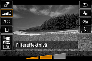 -inmatningsratten för att välja filtereffektnivån och tryck sedan på knappen