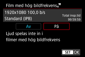 : Insp.storl. film] om du återställer den här inställningen till [Av].