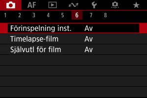Den här preliminära inspelningen kallas för en förinspelning. Kameran förinspelar automatiskt i standbyläge under filminspelningsläge.