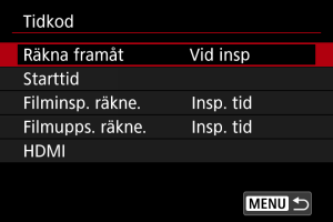 Använd [: Tidkod] för att ställa in tidkoden.