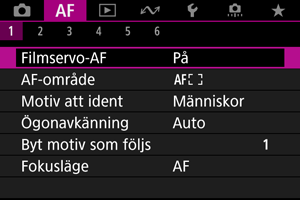 Du kan ange om du vill använda Filmservo-AF om motivet som är inställt i [: Motiv att ident] () inte detekteras.