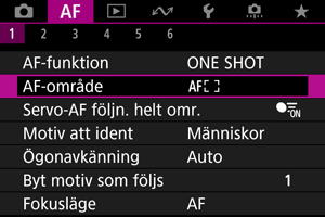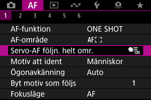 Du kan ställa in om du vill byta till spårning av motiv över hela området under Servo AF (medan avtryckaren är nedtryckt halvvägs med [: AF-funktion] satt till [Servo AF]).