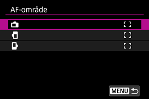 Som standard är en vertikal rektangulär Zon-AF-ram inställd.
