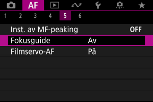 Att ställa in [: Fokusguide] till [På] tillhandahåller en styrram som visar vilken riktning man bör justera fokus och mängden justering som behövs.
