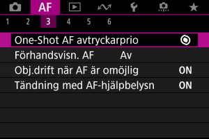 Du kan ange om fokus eller avtryckarfördröjning för One-Shot AF ska prioriteras (utom när du fotograferar med skärmavtryckare).