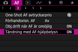 : Tändning med AF-hjälpbelysn] är satt till [Av].