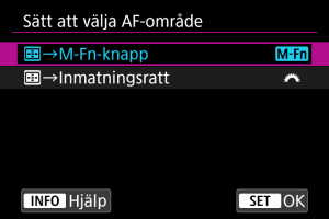 ]. Registrera inställningen genom att välja [OK]. Se AF-område för information om AF-områden.