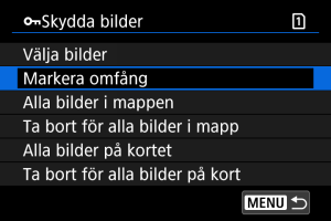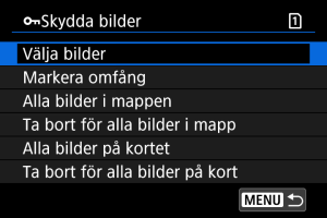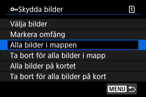 : Skydda bilder] kommer alla bilder i mappen eller på kortet att skyddas.