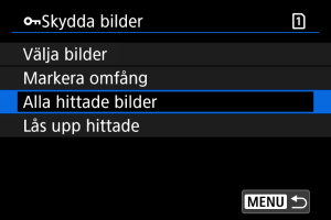 - Om du väljer [Alla hittade bilder] skyddas alla bilder som filtrerats med hjälp av sökkriterierna.