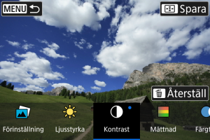 - Du kan välja effekter såsom [Ljusstyrka] eller [Kontrast] genom att trycka på knappen