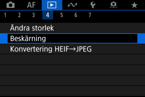 Du kan beskära en tagen JPEG- eller HEIF-bild och spara den separat. RAW-bilder och frame grab-bilder från 4K-filmer kan inte beskäras.